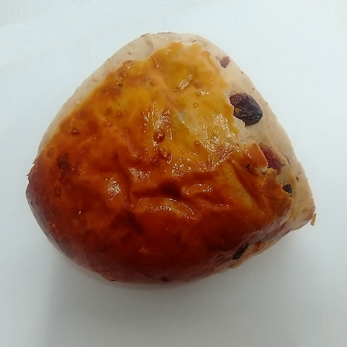 甘酸っぱいドライクランベリーとマイルドで食感の良いピーカンナッツを生地に混ぜ込みました。シナモンの風味をきかせたブリオッシュタイプのソフトな食感です。スライスして食べるのがオススメです。お求めやすい1/4サイズにカットしました。